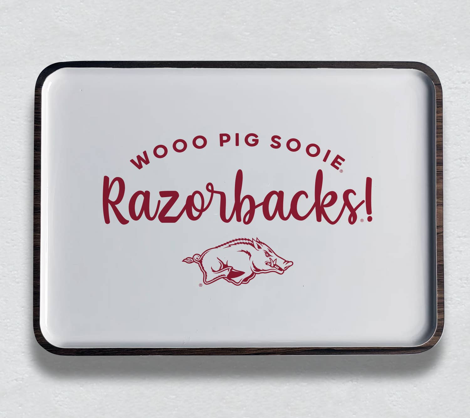 Serve in style with this officially licensed 10x14 mango wood tray, featuring vibrant color detailing and a bold University logo. Crafted from durable, natural mango wood, it’s perfect for entertaining or everyday use. Whether hosting game-day snacks or displaying décor, this tray adds a touch of school spirit to any setting.