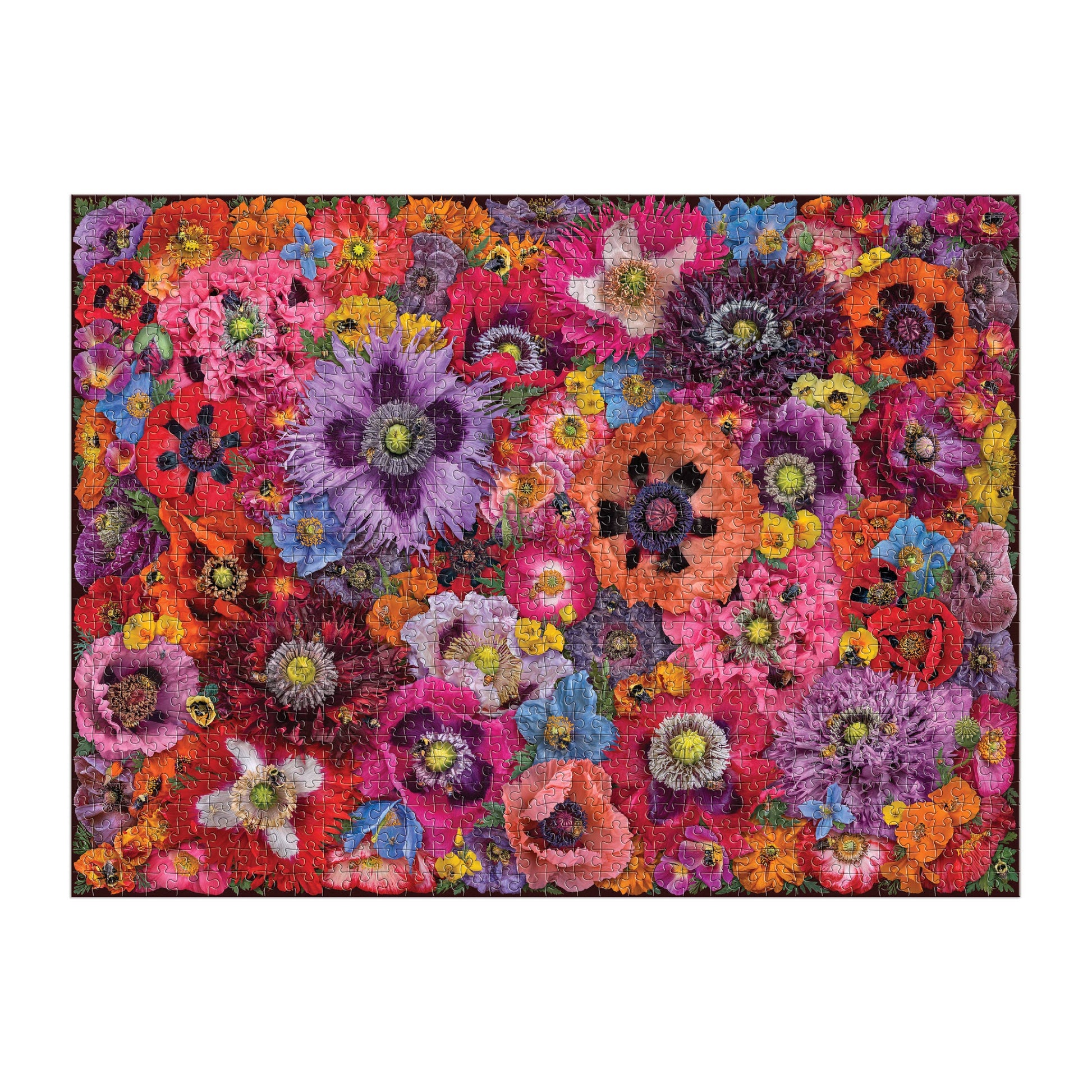Bees in the Poppies 1000 Piece Puzzle from Galison features 43 varieties of poppies grown, photographed and collaged by Troy Litten with 100 bees nested within the poppies for a colorful and challenging puzzling experience. Galison puzzles are packaged in matte-finish sturdy boxes, perfect for gifting, reuse, and storage.
