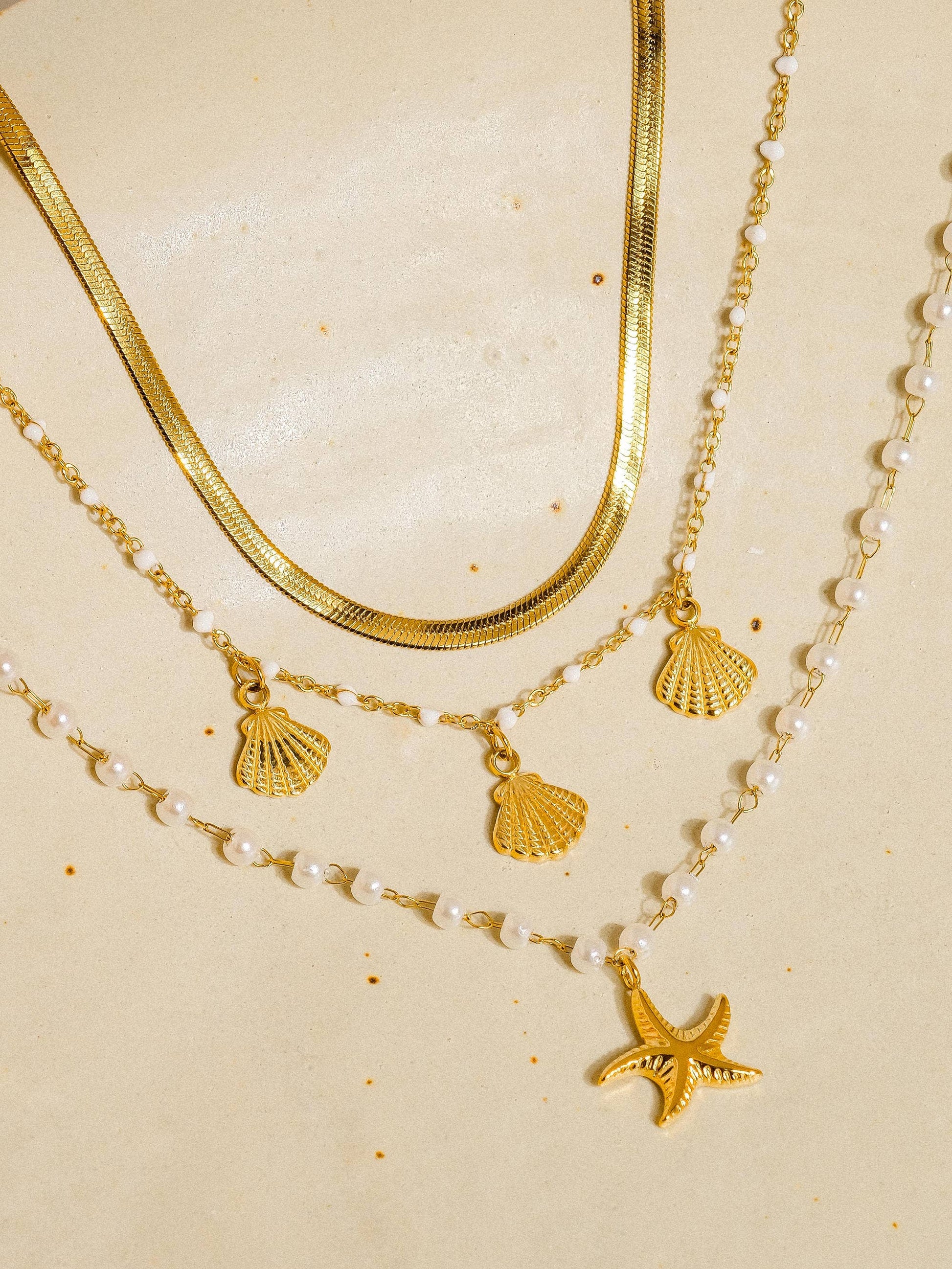 18K Gold Non-Tarnish Shell Pearl Stack Bracelet Set of 3