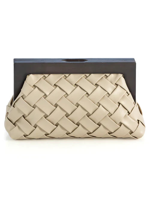 Carry your essentials in style with Shiraleah's Charlotte Frame Clutch. This handhel purse features a vegan leather woven texture and a wood top handle, adding a sophisticated edge to this chic silhouette. Measuring L 11" × W 4" × H 7.25", and equipped with a magnetic frame closure and inner slip pocket, the Charlotte Frame Clutch is the perfect addition to your favorite outfit. Pair with other items from Shiraleah to complete your look!