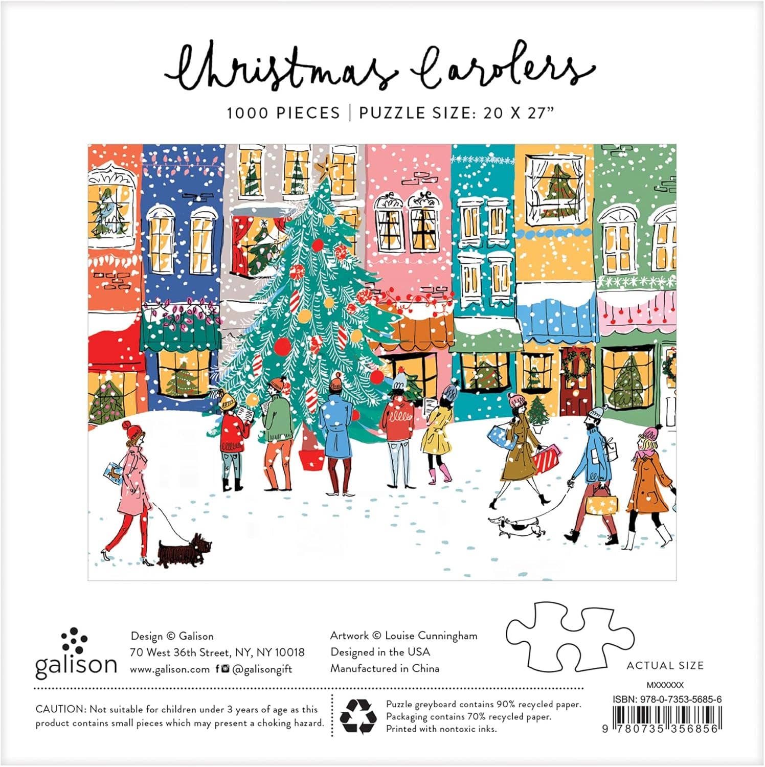 Celebrate the holidays with Christmas Carolers 1000 Piece Puzzle from Galison. Piece together to reveal a classic scene of friends and family caroling in the snow by Louise Cunningham Starling.
