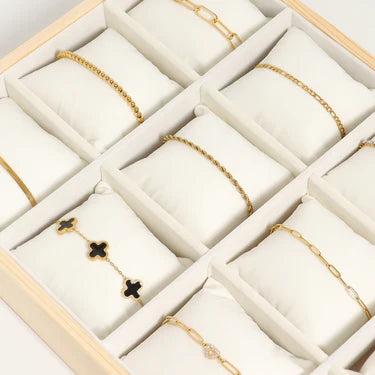 Elevate your jewelry collection with our stunning Lucky Clover Charm Bracelet! The perfect accessory to bring a touch of charm and good fortune. This bracelet features a luxurious 18k PVD Gold coating Stainless Steel that not only enhances its beauty, but also provides excellent durability and resistance to tarnishing. The lucky clover symbolizes prosperity and good luck, making a thoughtful gift for anyone seeking a bit of extra fortune in their lives!