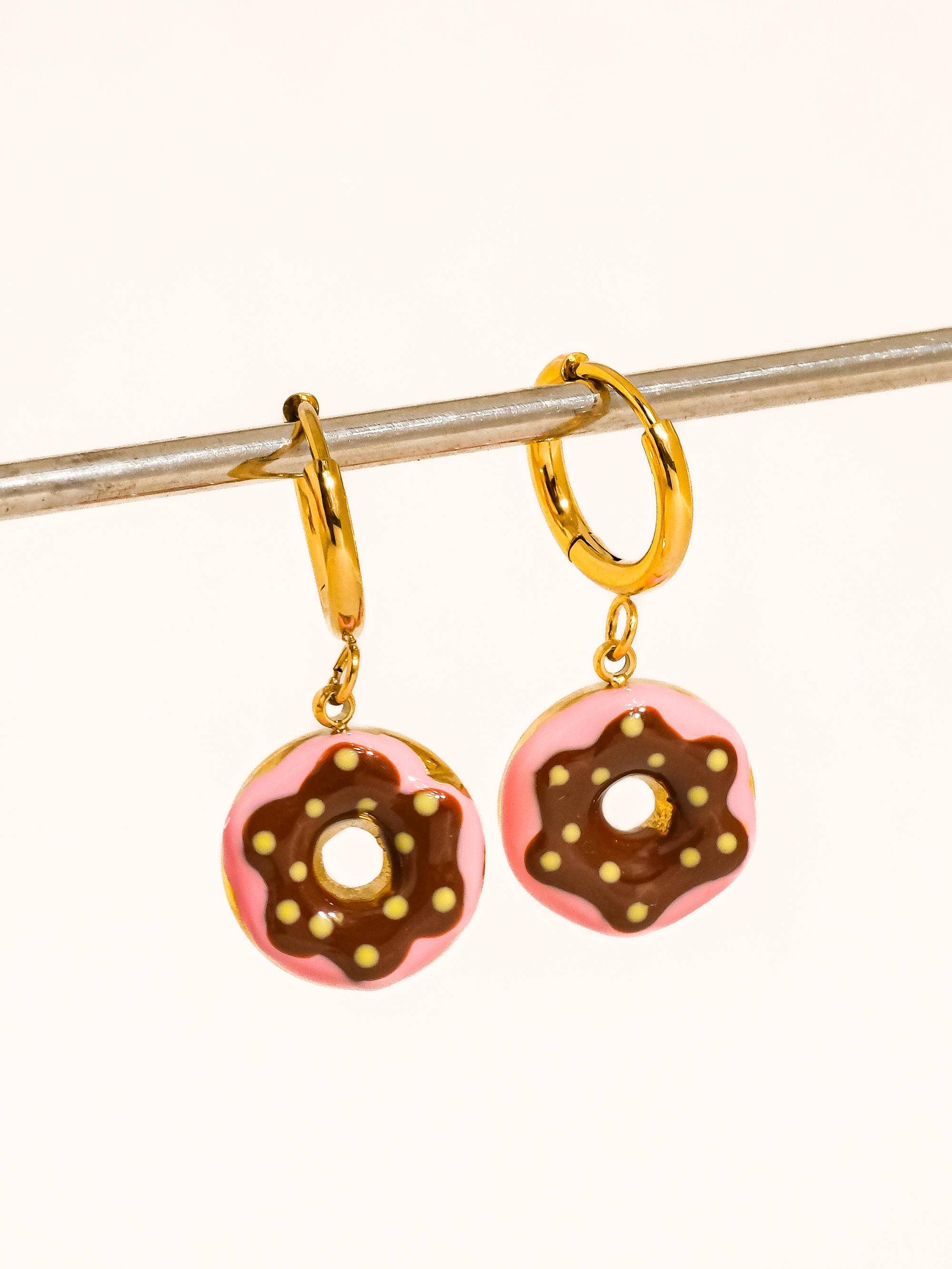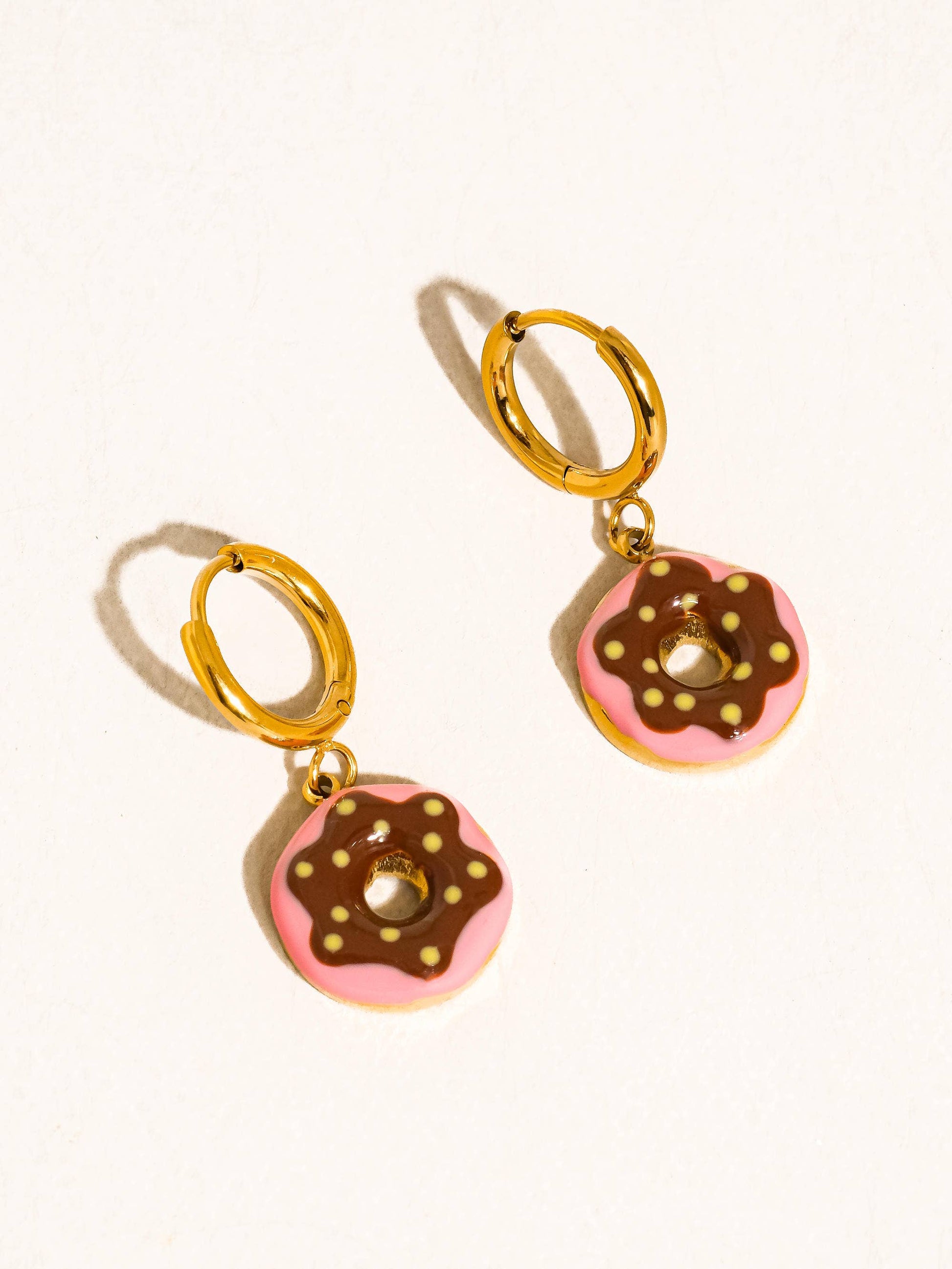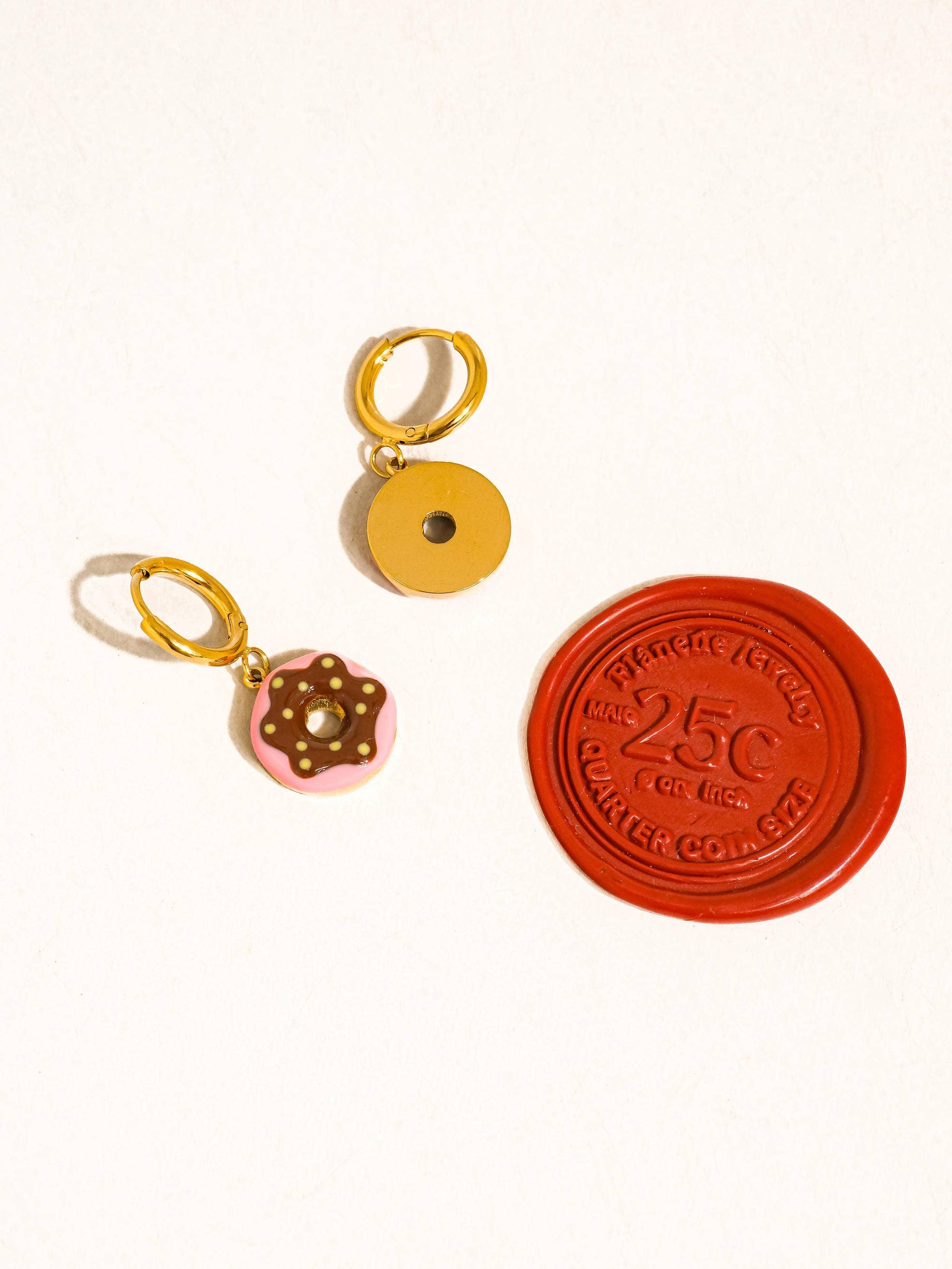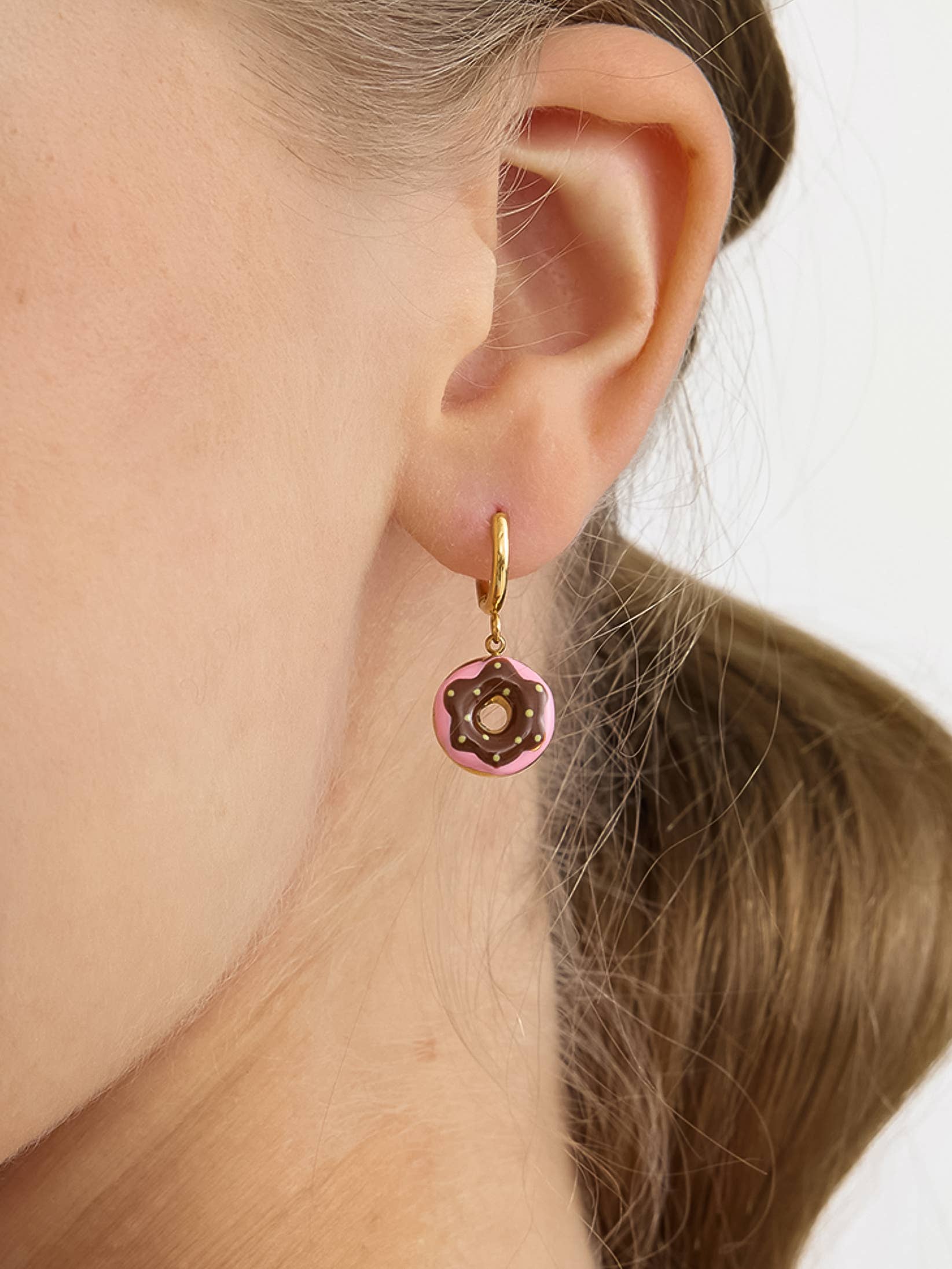 18K Gold Non-Tarnish Donut Charm Hoop Earring