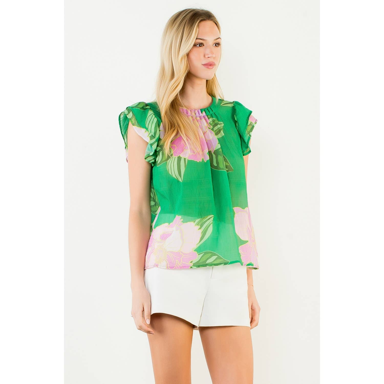 Floral Print Flutter Sleeve Top