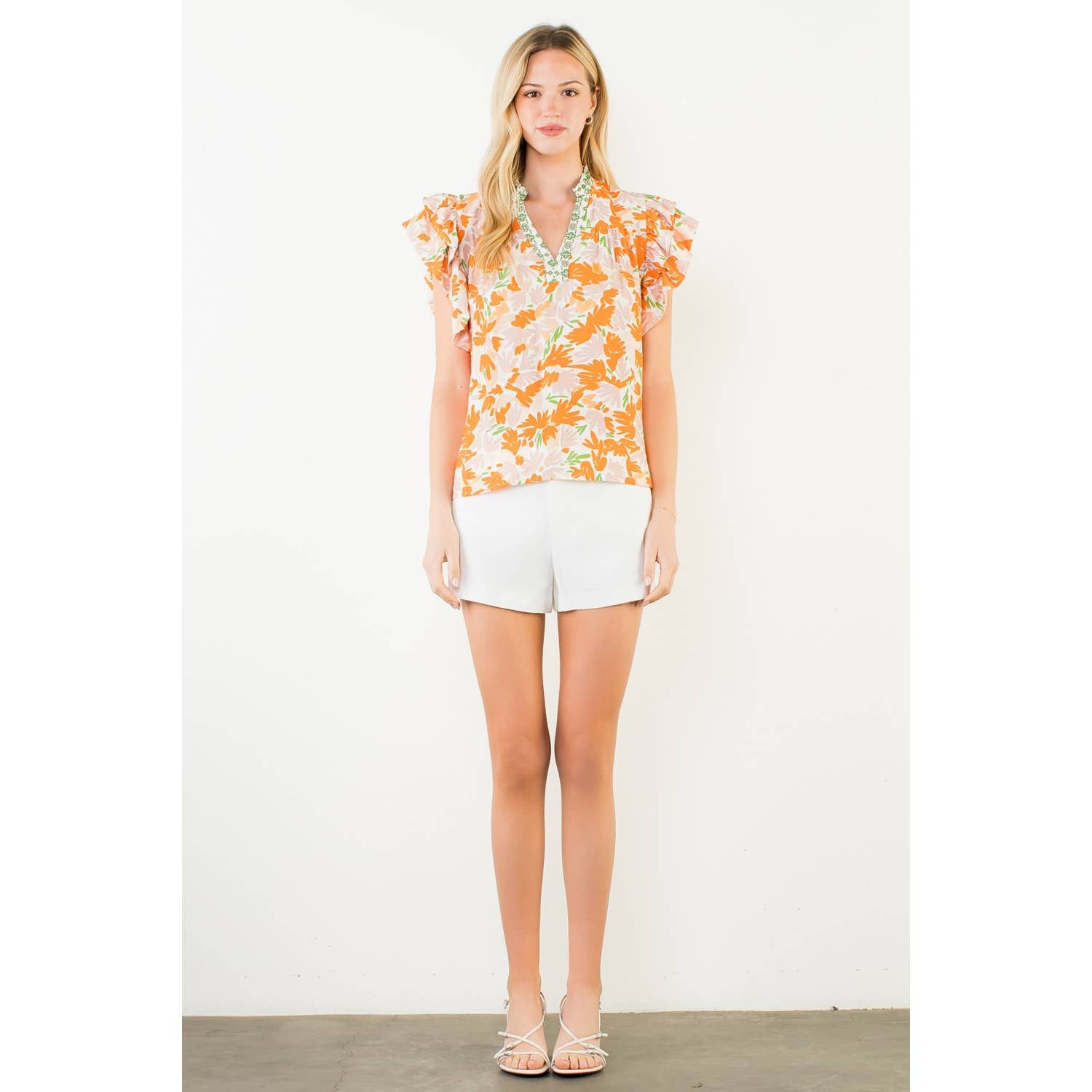 Flowy Sleeve Floral Print V-Neck Top