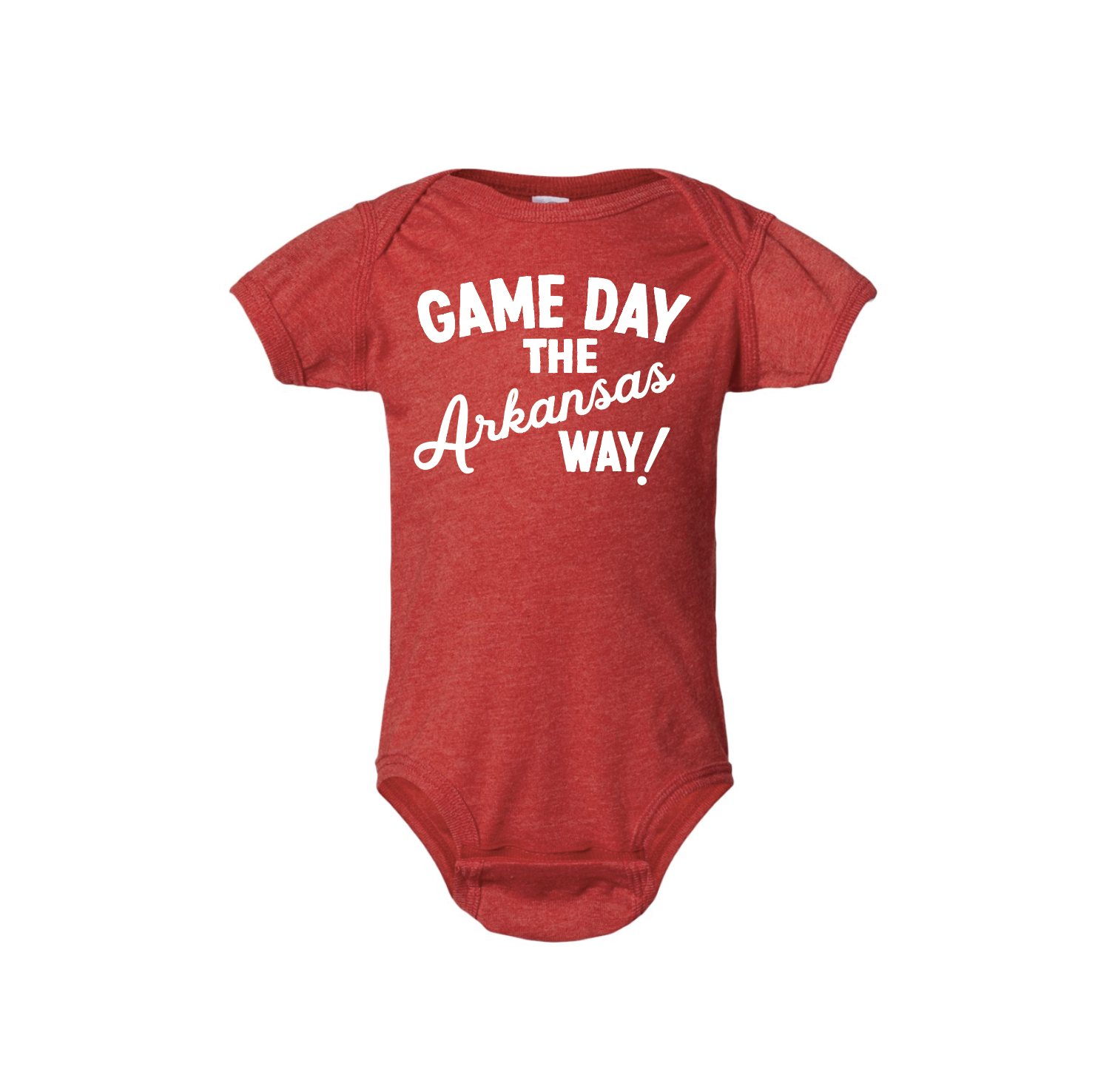 Woo Pig Sooie! This short sleeve unisex tee is in heather red and screen printed with white water based ink for the softest vintage feel. We love to pair this with jeans for game day in Fayetteville cheering on the Razorbacks.