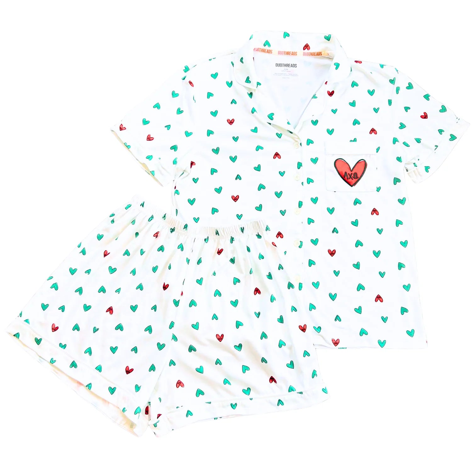 Sweet dreams, sisterhood edition. Our Love Letters PJ Set is printed with a dreamy heart pattern featuring your sorority letters and made from the softest butter fabric you’ll ever sleep in. With a relaxed fit and cute front pocket detail (starring your sorority’s heart front and center), this set is perfect for movie nights, sleepovers, or lounging in style with your sisters.