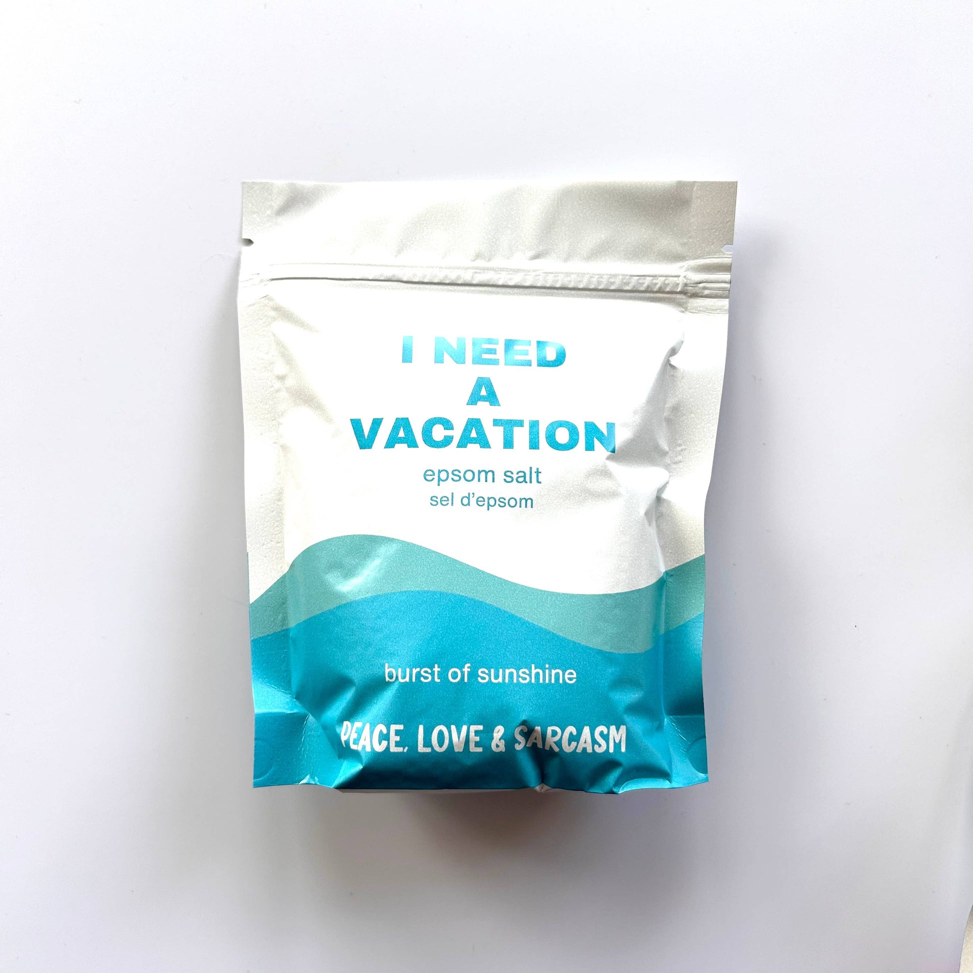 Escape the stress of daily life with I Need A Vacation Epsom Salts. Made from pure epsom salt, this product encourages relaxation and self-care. Take a much-needed time out and pamper yourself with the soothing and rejuvenating benefits of these epsom salts. Treat yourself to a vacation without ever leaving your home.