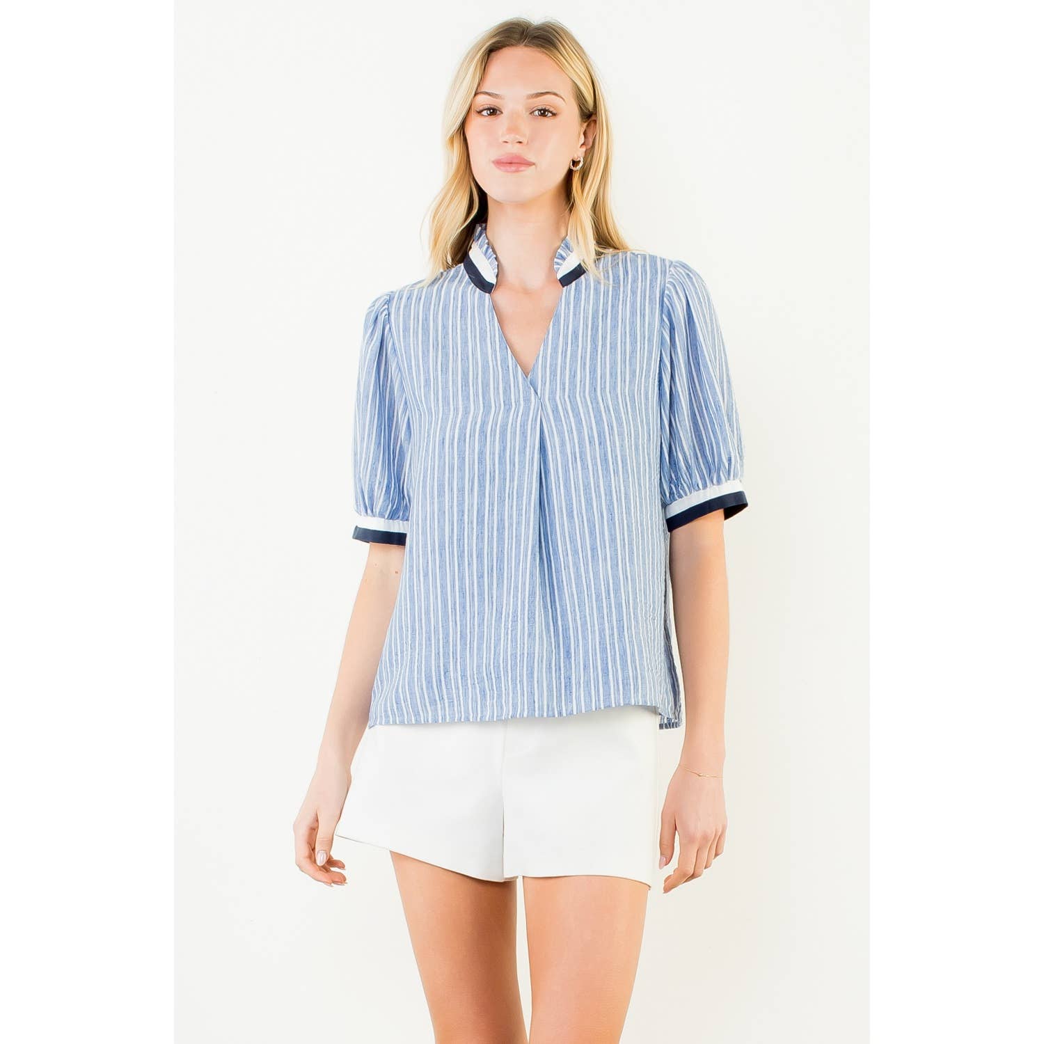 Short Sleeve Striped V-Neck Top