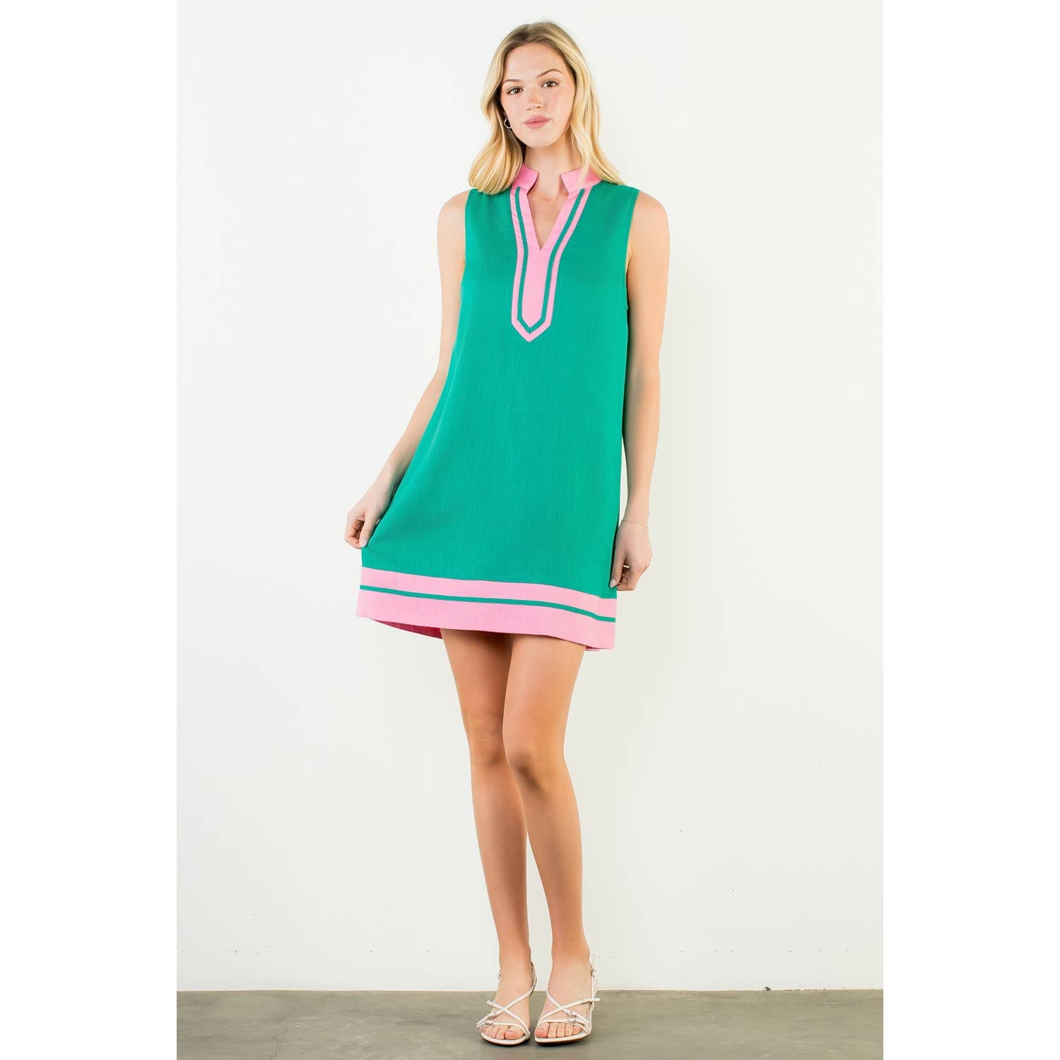 Sleeveless Split Neck Contrast Trim Dress