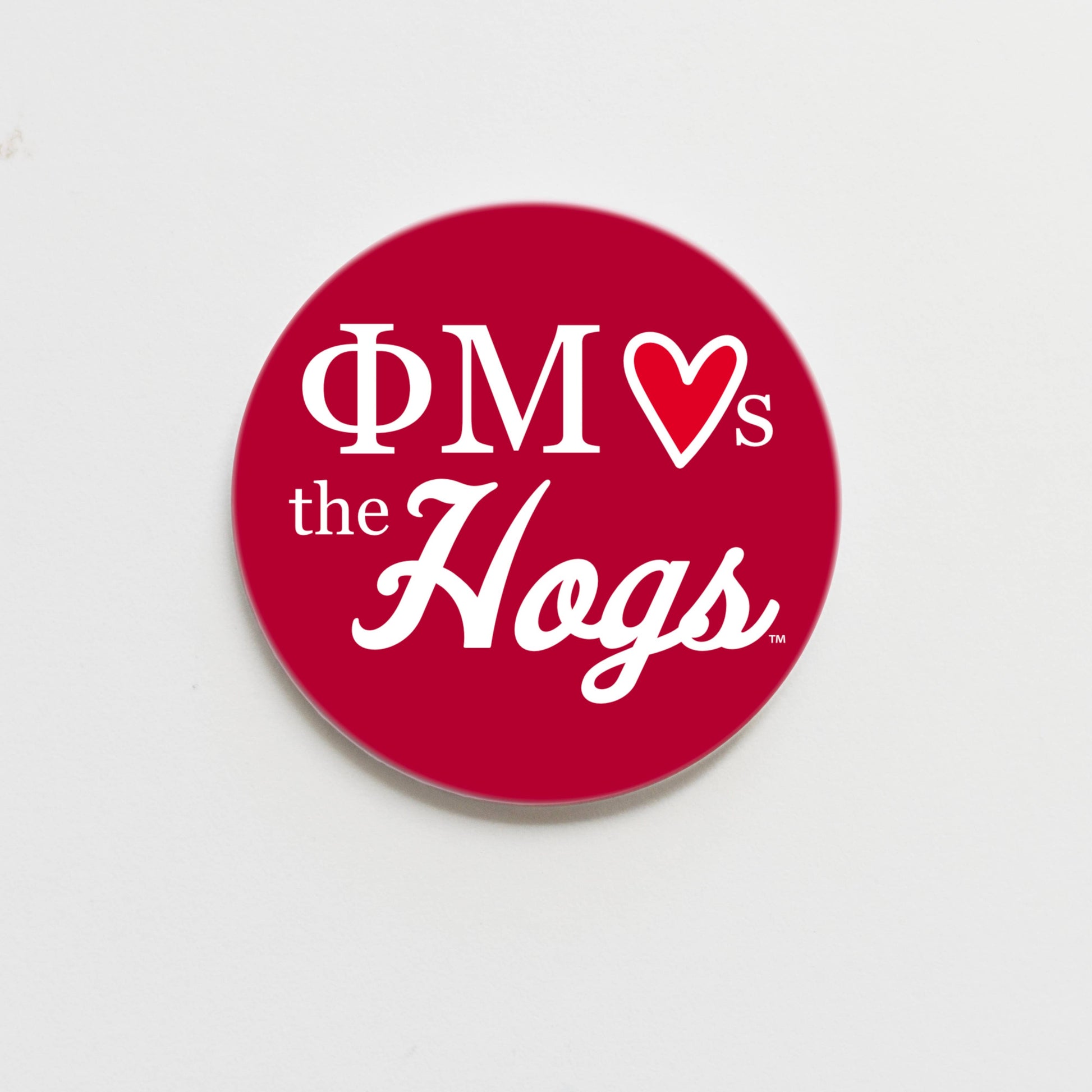 get ready to cheer on the Razorbacks with our officially licensed game day buttons! these 3" buttons, choose from 2 designs, are perfect for showing your Arkansas and chapter spirit!. These buttons will look great on gameday. Wooo Pig Sooie! choose from 1 of 2 designs,