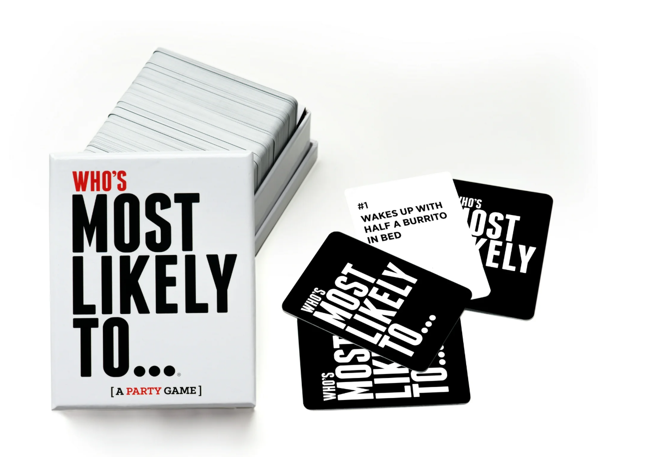 - Who's Most Likely To...is a party game for you and your stupid friends. Each round a card is drawn and the group decides who in the group would be most likely to: #92 Call Dibs On People At Parties, #119 Use Daddy's Credit Card and much more.
